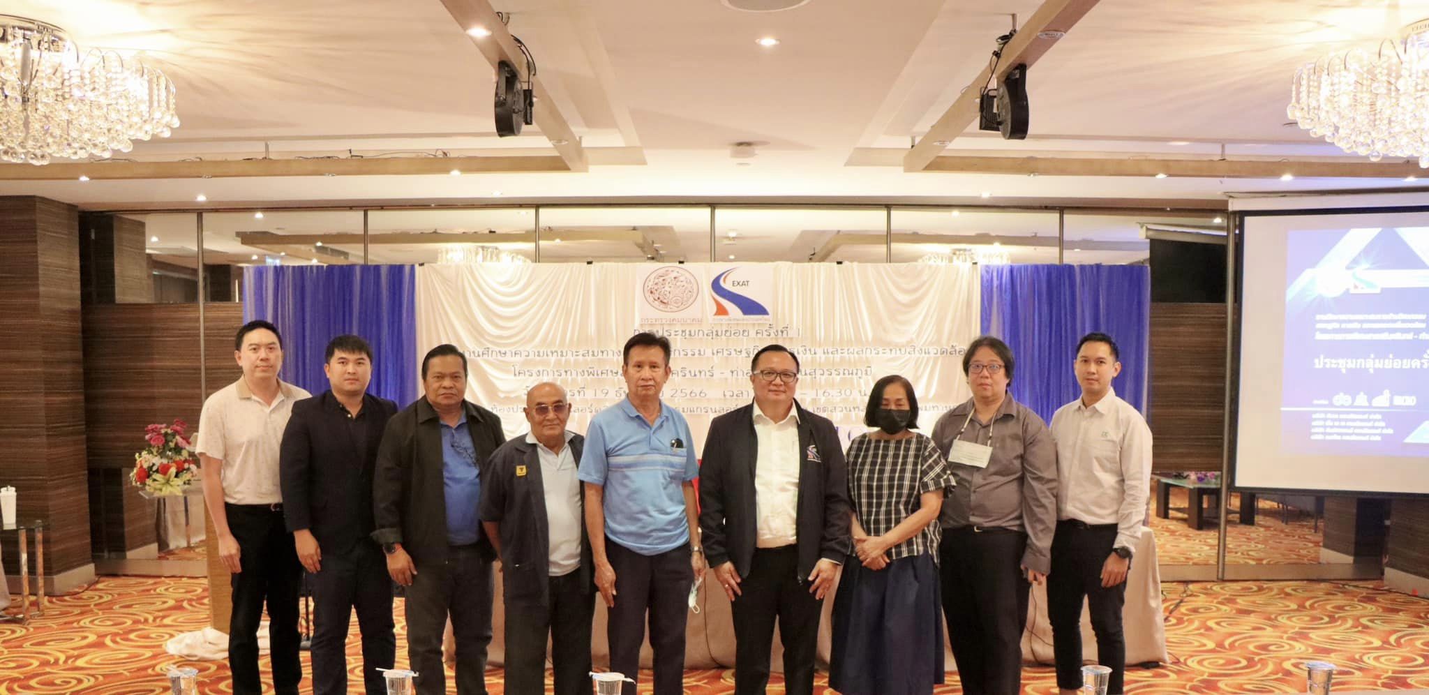 งานศึกษาความเหมาะสมทางด้านวิศวกรรม เศรษฐกิจ การเงิน และผลกระทบสิ่งแวดล้อม โครงการทางพิเศษสายศรีนครินทร์ – ท่าอากาศยานสุวรรณภูมิ เพื่อประชาสัมพันธ์ข้อมูลของโครงการ ความเป็นมาเหตุผลความจำเป็นของการพัฒนาโครงการ ตลอดจนแนวทางการศึกษาและขั้นตอนการศึกษาที่สำคัญรวมทั้งนำเสนอตำแหน่งและรูปแบบของโครงการ พร้อมทั้งรับฟังความคิดเห็นและข้อเสนอแนะจากประชาชน ณ ห้องประชุมแกรนด์ลอร์ด 2 โรงแรมแกรนด์ลอร์ด บูติค โฮเทล เขตสวนหลวงกรุงเทพมหานคร