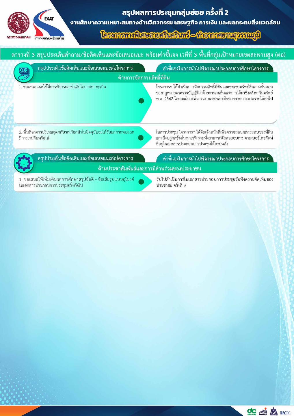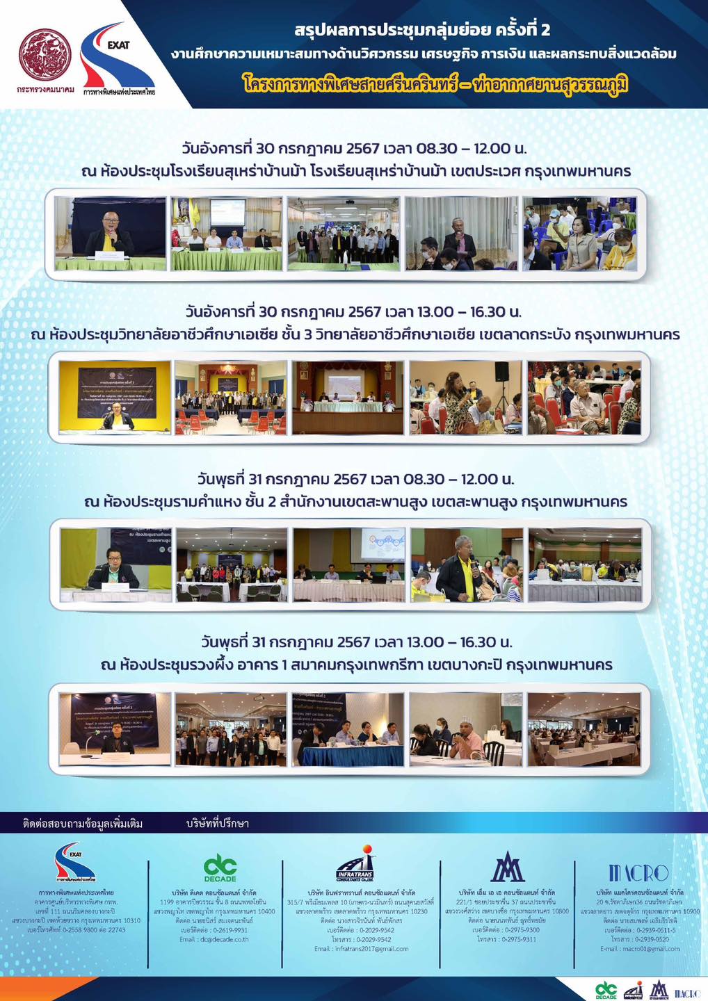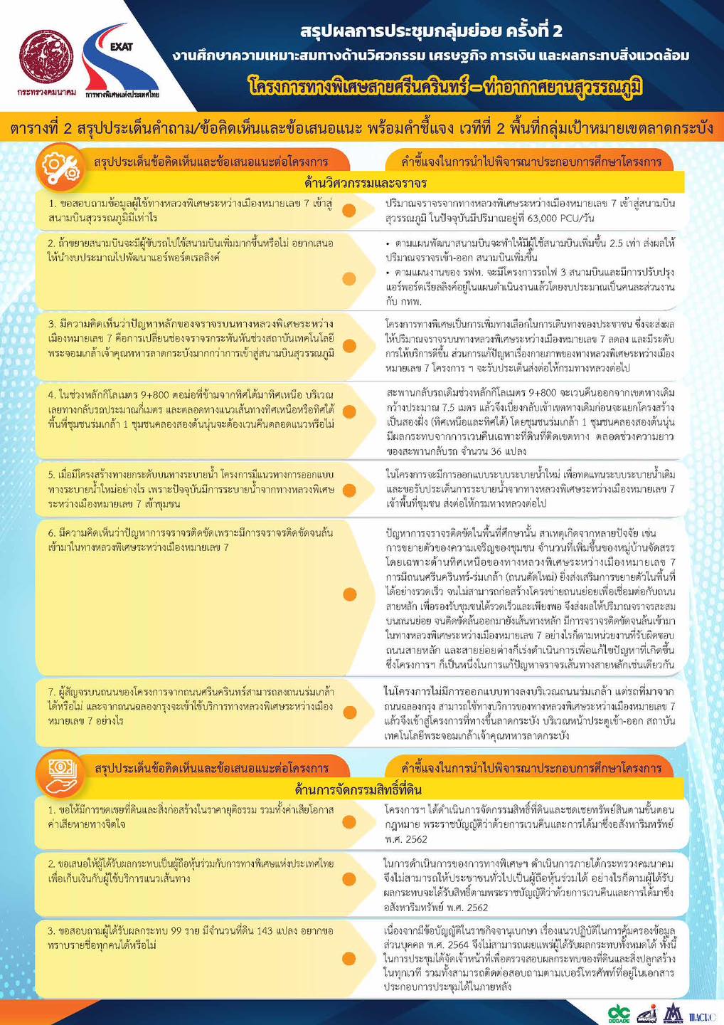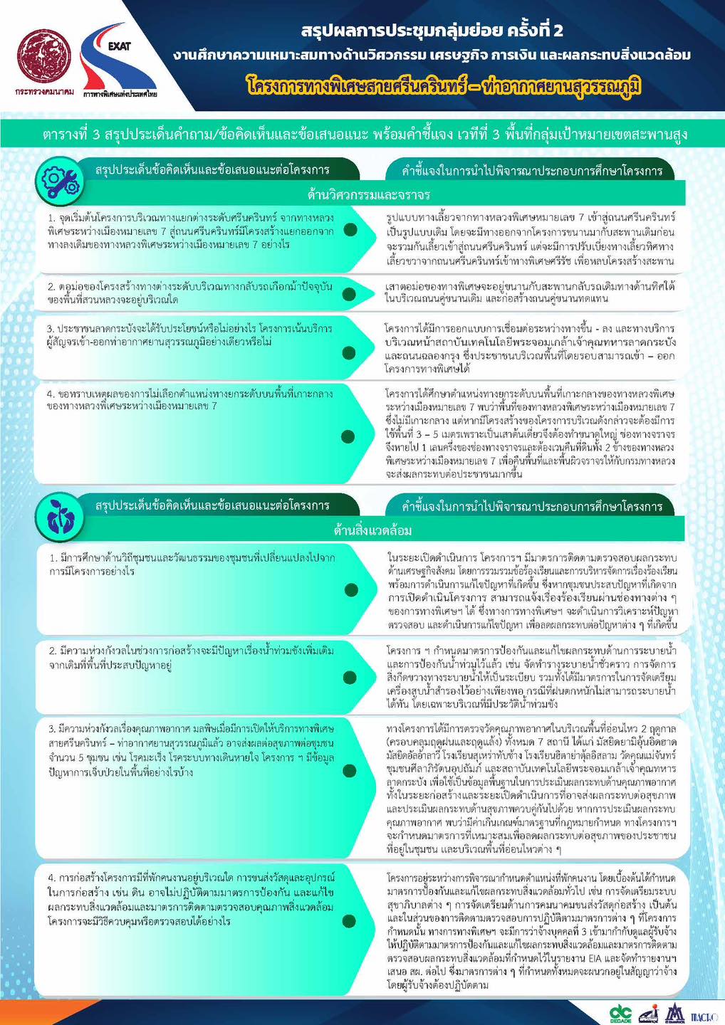 สรุปผลประชุมกลุ่มย่อย ครั้งที่ 2 งานศึกษาความเหมาะสมทางด้านวิศวกรรม เศรษฐกิจ การเงิน และผลกระทบสิ่งแวดล้อม โครงการทางพิเศษสายศรีนครินทร์ – ท่าอากาศยานสุวรรณภูมิ ระหว่างวันที่ 30 -31 กรกฎาคม พ.ศ. 2567
