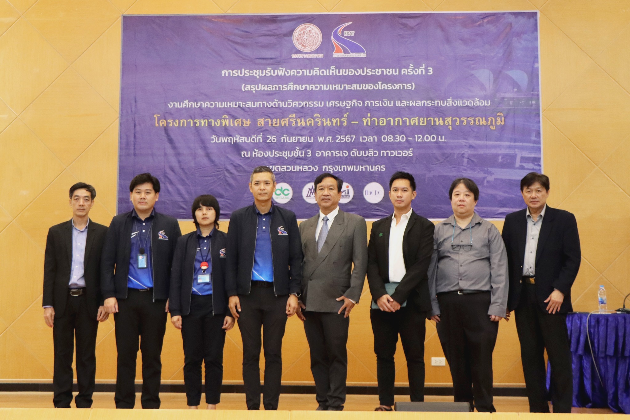 เมื่อวันพฤหัสบดีที่ 26 กันยายน 2567 เวลา 08.30-12.00 น. การทางพิเศษแห่งประเทศไทย (กทพ.) ได้จัดการประชุมรับฟังความคิดเห็นของประชาชน ครั้งที่ 3 (สรุปผลการศึกษาความเหมาะสมของโครงการ) งานศึกษาความเหมาะสมทางด้านวิศวกรรม เศรษฐกิจ การเงิน และผลกระทบสิ่งแวดล้อม โครงการทางพิเศษสายศรีนครินทร์ – ท่าอากาศยานสุวรรณภูมิ เพื่อประชาสัมพันธ์แนวเส้นทางที่เหมาะสมของโครงการ รูปแบบตำแหน่งทางยกระดับ จุดเริ่มต้น -จุดสิ้นสุดโครงการ รูปแบบโครงสร้างทางพิเศษ การออกแบบระบบระบายน้ำ รูปแบบและตำแหน่งระบบจัดเก็บค่าผ่านทางและเทคโนโลยีที่เหมาะสมและตำแหน่งที่มีผลกระทบการเวนคืน ผลการศึกษาด้านสิ่งแวดล้อม ร่างมาตรการป้องกันและแก้ไขผลกระทบสิ่งแวดล้อมและมาตรการติดตามตรวจสอบผลกระทบสิ่งแวดล้อม พร้อมทั้งร่วมแลกเปลี่ยนรับฟังความคิดเห็นและข้อเสนอแนะจากประชาชน ณ ห้องประชุมชั้น 3 อาคารเจ ดับบลิว ทาวเวอร์ เขตสวนหลวง กรุงเทพมหานคร โดยมีนายกาจผจญ อุดมธรรมภักดี รองผู้ว่าการ (ยุทธศาสตร์และแผน) การทางพิเศษแห่งประเทศไทย เป็นประธานในพิธีเปิดการประชุมฯ