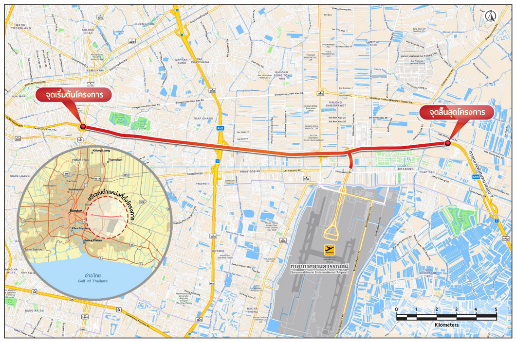 การดำเนินงานศึกษาความเหมาะสมทางด้านวิศวกรรม เศรษฐกิจ การเงิน และผลกระทบสิ่งแวดล้อม โครงการทางพิเศษสายศรีนครินทร์ – ท่าอากาศยานสุวรรณภูมิ มีระยะทางประมาณ 18 กิโลเมตร โดยมีจุดเริ่มต้นโครงการต่อเชื่อมจากทางพิเศษศรีรัช (ส่วน D) บริเวณถนนศรีนครินทร์ มุ่งหน้าไปทางทิศตะวันออกซ้อนทับไปตามแนวทางหลวงพิเศษหมายเลข 7 เชื่อมต่อกับถนนวงแหวนรอบนอกกรุงเทพมหานครด้านตะวันออก ท่าอากาศยานสุวรรณภูมิ และมีจุดสิ้นสุดโครงการบริเวณพื้นที่ลาดกระบัง เพื่อเป็นอีกหนึ่งทางเลือกในการเดินทางที่จะช่วยบรรเทาปัญหาการจราจร บนทางหลวงพิเศษหมายเลข 7 รวมทั้งเป็นการเพิ่มศักยภาพด้านการคมนาคมและแก้ไขปัญหาการจราจรในเขตกรุงเทพมหานครและปริมณฑลให้เกิดความสะดวกและปลอดภัยต่อผู้เดินทางยิ่งขึ้น